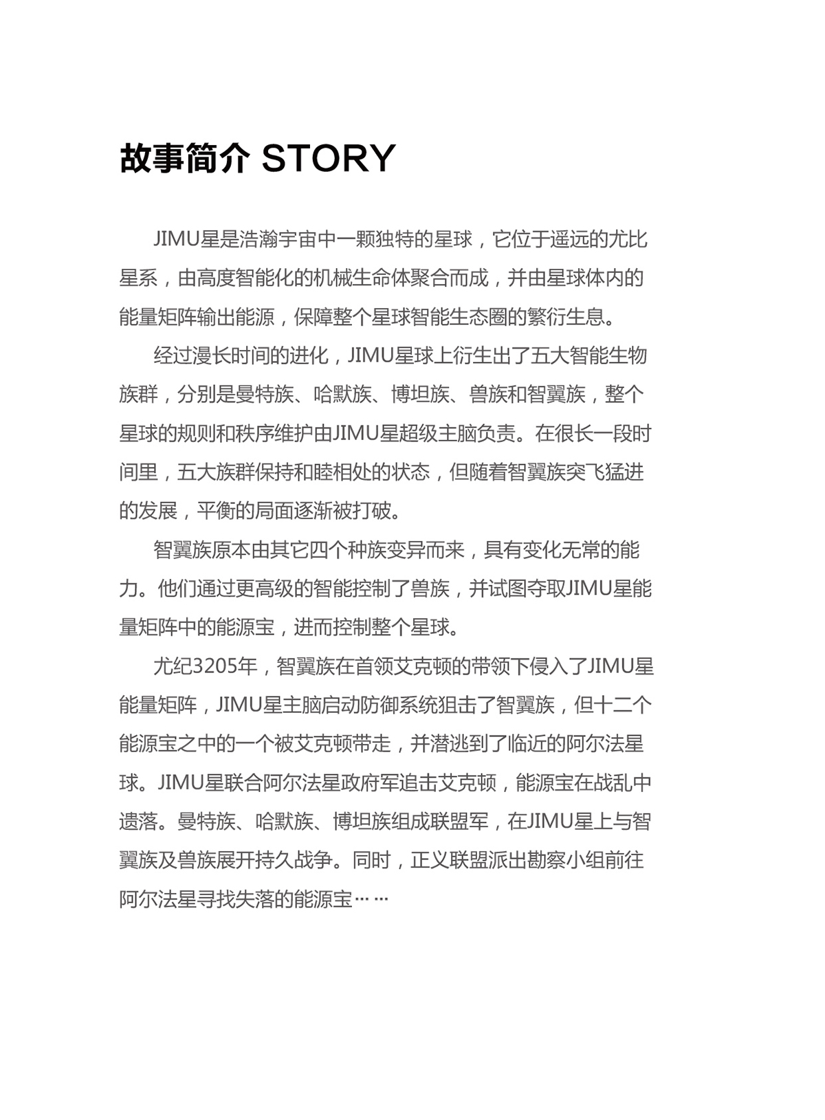 Jimu星球位于遥远的尤比星系,它是一个高度智能化的星球。在它的核心中枢,由十二个能量魔方所组成的矩阵中心通过吸收宇宙中的散逸能量,供给整个星球物种的繁荣发展。
