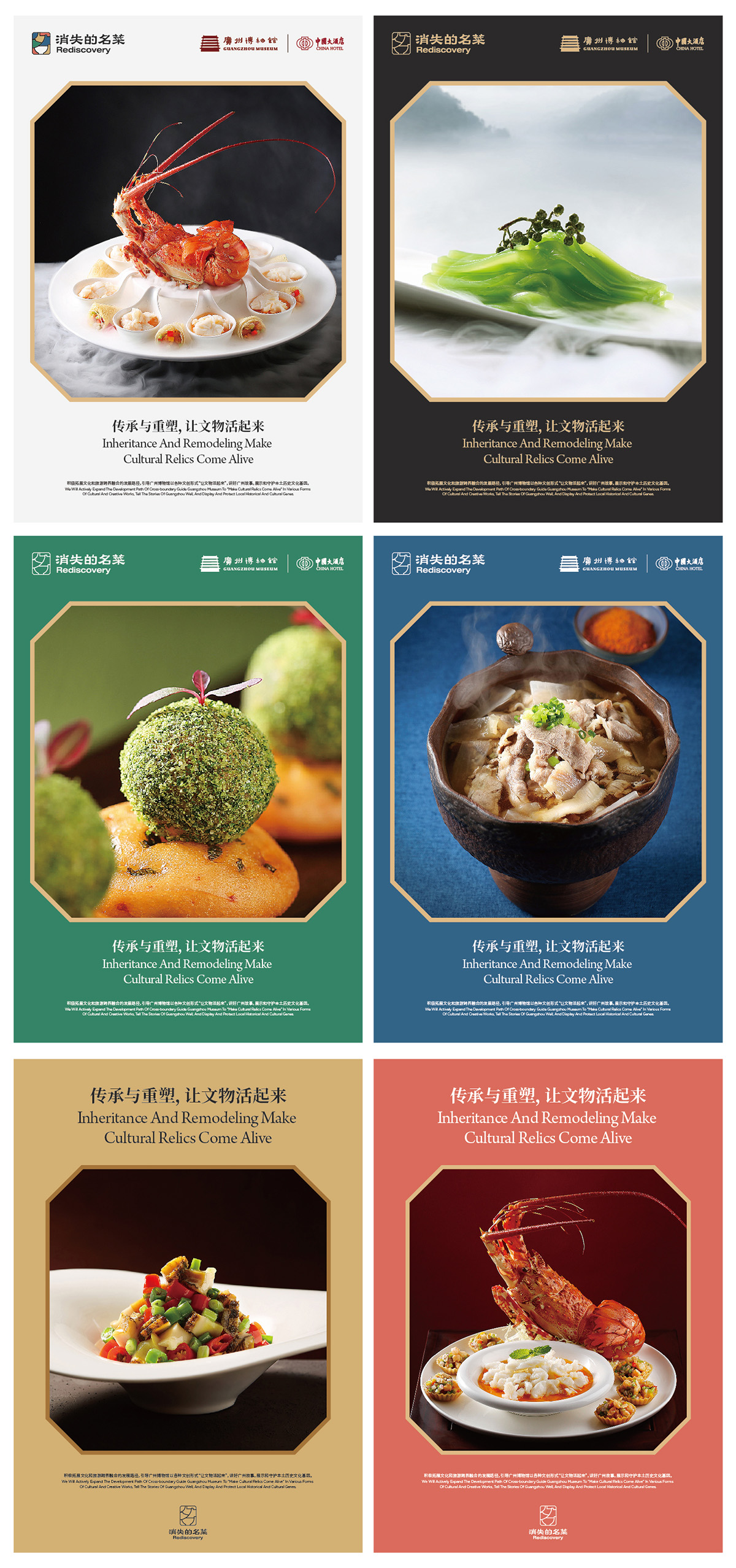 消失的名菜文旅项目一方面重现消失的传统粤菜,传承广府饮食文化;但更重要的是重塑,用现代的烹饪技艺对传统的粤菜工艺进行改良,品牌核心理念是传承与重塑,这是品牌最大的差异化优势。如何表达传承与重塑,如何解决中国传统文化现代化创新的社会命题是品牌视觉传递的战略重心。