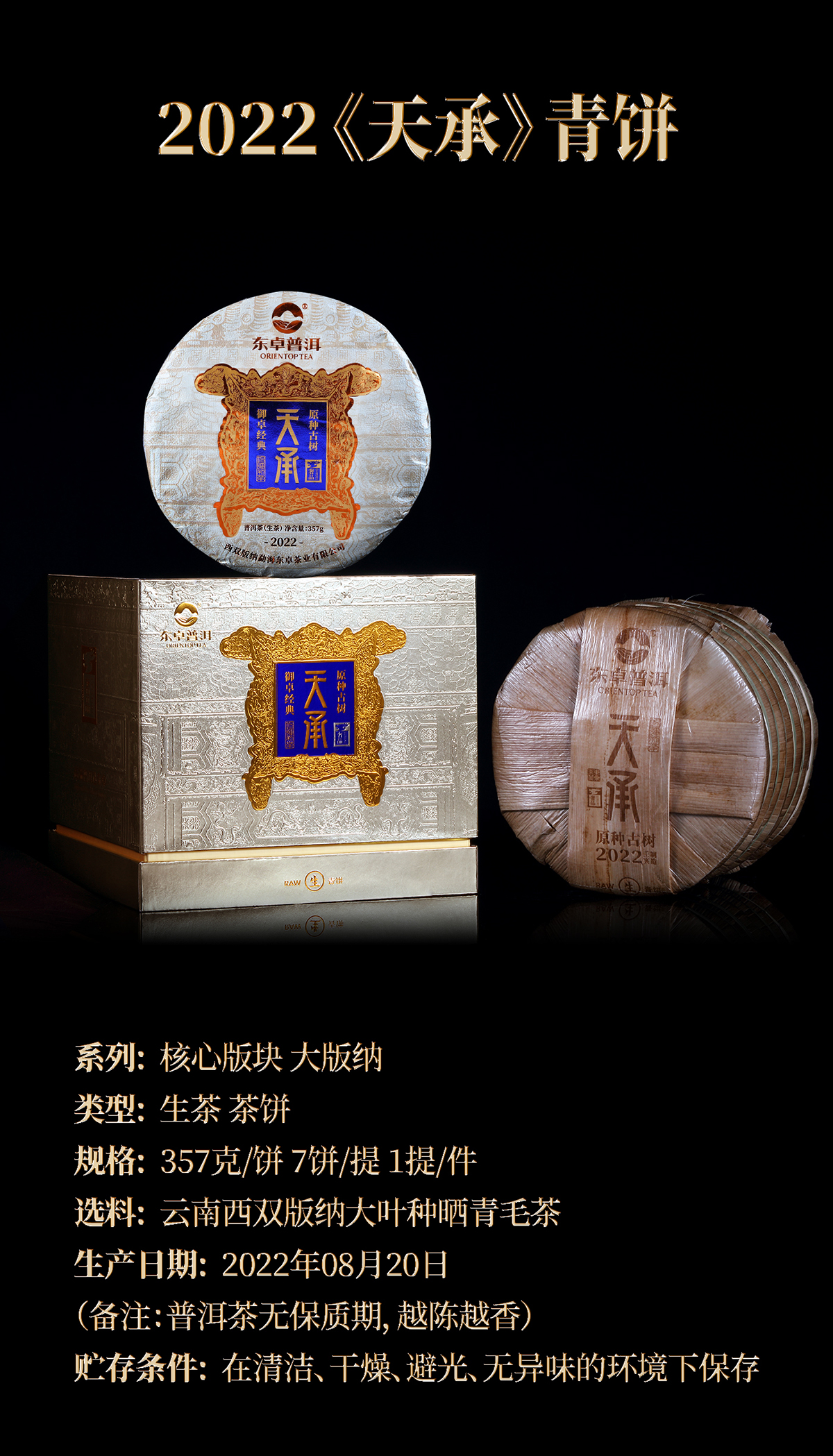 天承在中国古籍中有应天顺命,继承天的意志的含义。天承代表了东卓打造顶级产品的决心,我们将天承产品定位为“再一次定义奢藏标杆的易武班章高端拼配”,易武班章高端拼配聚焦品类,奢藏标杆传递价值优势,抢占易武班章高端拼配第一名的消费心智。