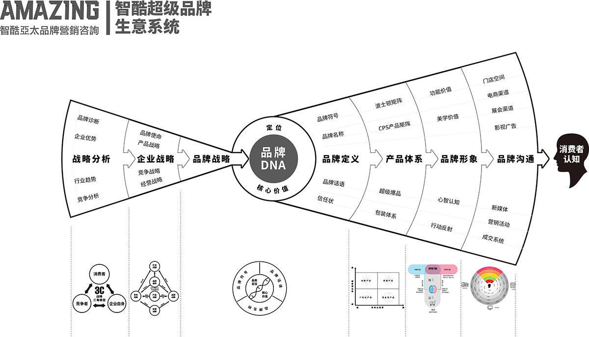 智酷亚太对品牌形象的本质理解是:品牌形象是设计消费者认知品牌的系统工程,消费者的认知是有逻辑的,科学的搭建认知系统才能让消费者认知认可认同。