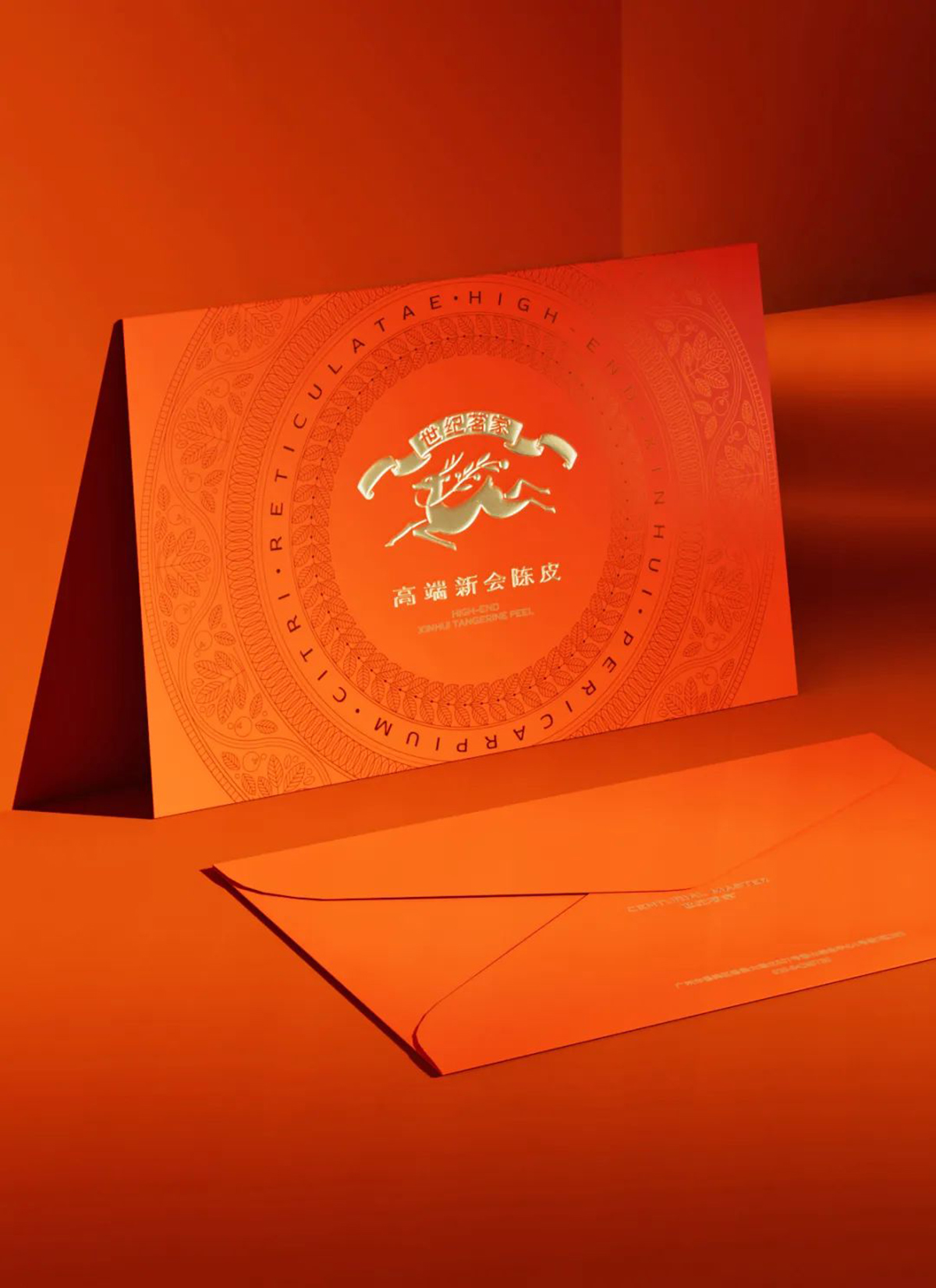 对于中国人来说,陈皮是一种名贵的食材,也是一味药,这意味着陈皮自带健康、长寿、贵气的属性。而在中国人的传统认知中,能集合这些属性的符号屈指可数,而鹿恰恰是其中之一。鹿为禄,福禄有幸福富足之意。在传统中国文化中,鹿常与寿星为伴,代表长寿。我们首先找到世纪茗家的文化原型——中国鹿。