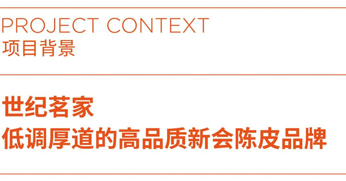 世纪茗家是一家地道的新会陈皮品牌,通过扎实稳定的品控,以及十数年坚持生产高品质新会陈皮,赢得了一大批忠诚的老客户。伴随陈皮行业竞争愈发激烈,品牌发展进入瓶颈期,品牌形象滞后、产品线杂乱等问题愈发影响品牌的生意增长。