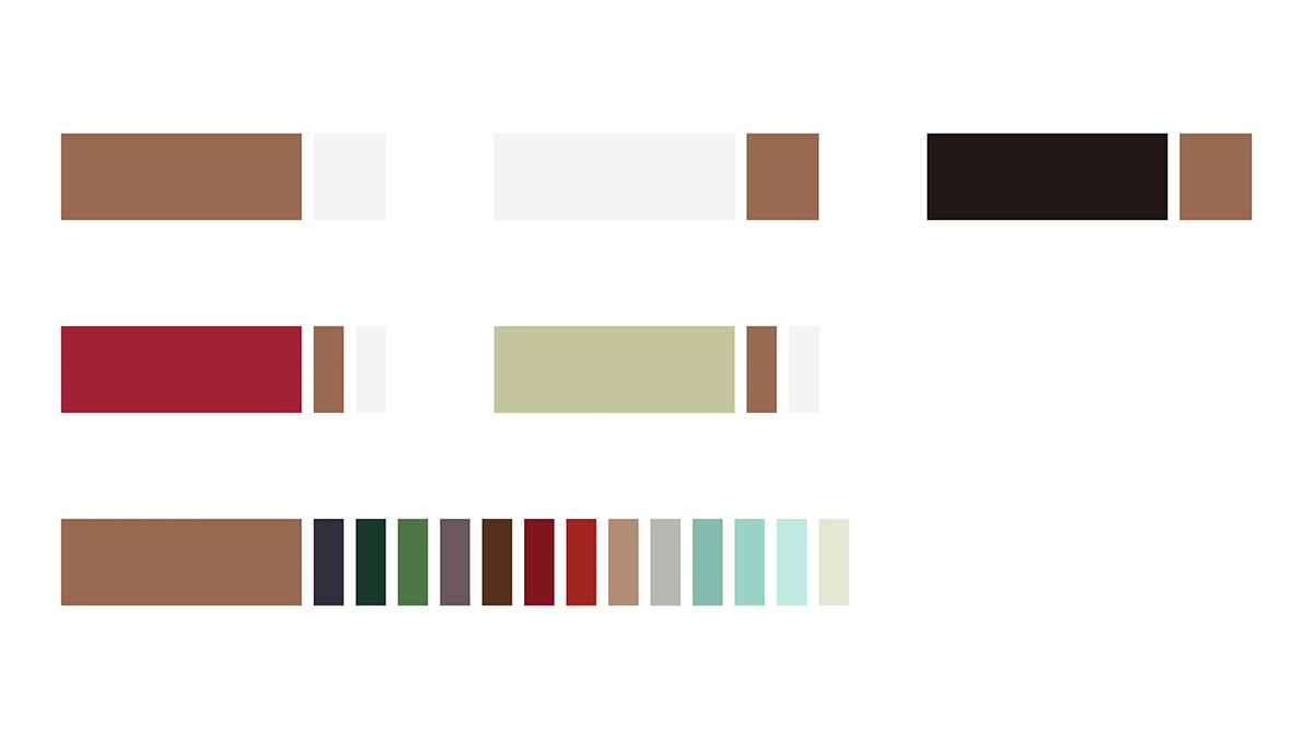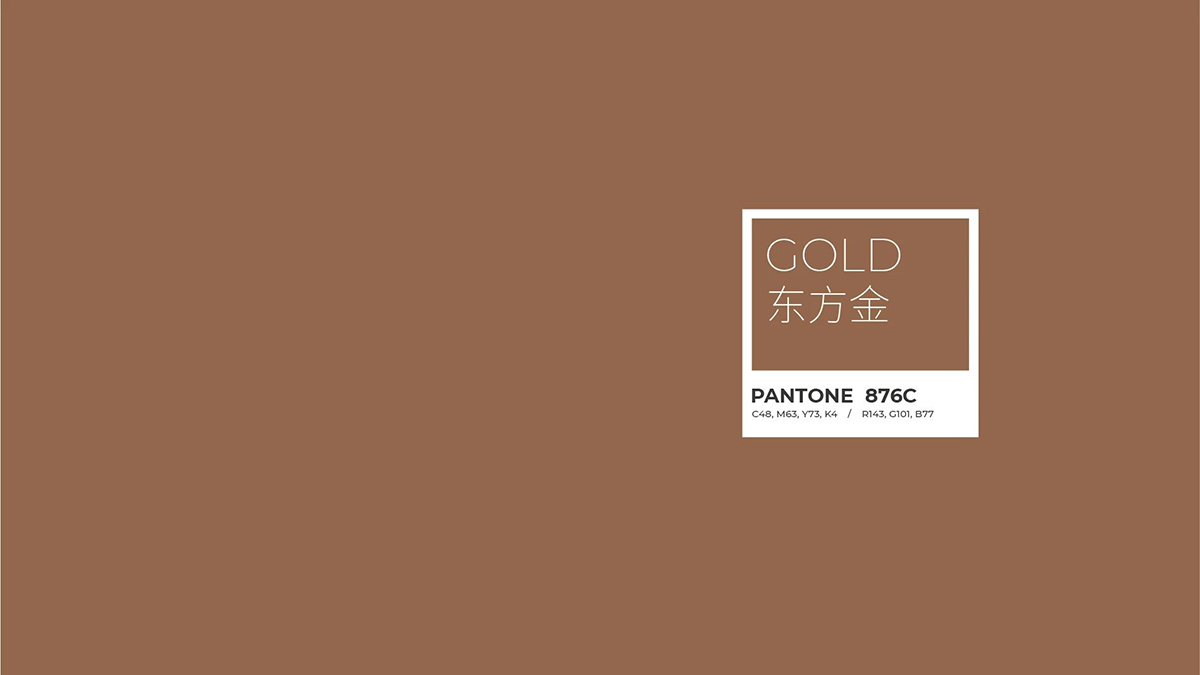基于品牌核心东方基因,我们从日出东方的场景中选定金色界定为品牌主色。其次东方宾馆是中国酒店的代表品牌,而红色是中国人骨子里的记忆,所以我们选定东方红为品牌辅助色,最后我们基于东方宾馆园林式酒店的差异化优势选定玉石绿为品牌辅助色。