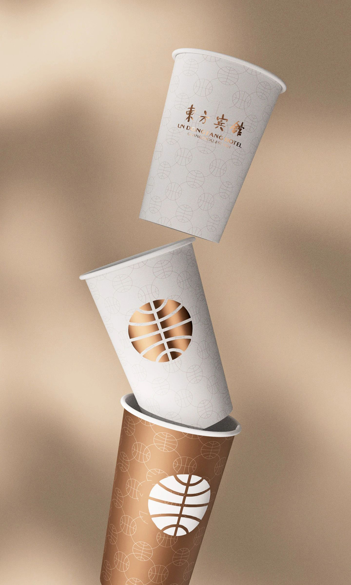 通过自我审视,我们发现,东方宾馆的视觉形象应用混乱:品牌辅助图形过多,不利于顾客建立对品牌的统一认知;六边形東字标内“東”字笔触细碎,识别性差,没有视觉想象空间;红金鱼符号识别度高,但与东方宾馆核心DNA(东方、国际、品质)没有关联;笑脸符号简洁有现代感,但同样与东方宾馆核心DNA没有关联,只能代表品牌优质服务。