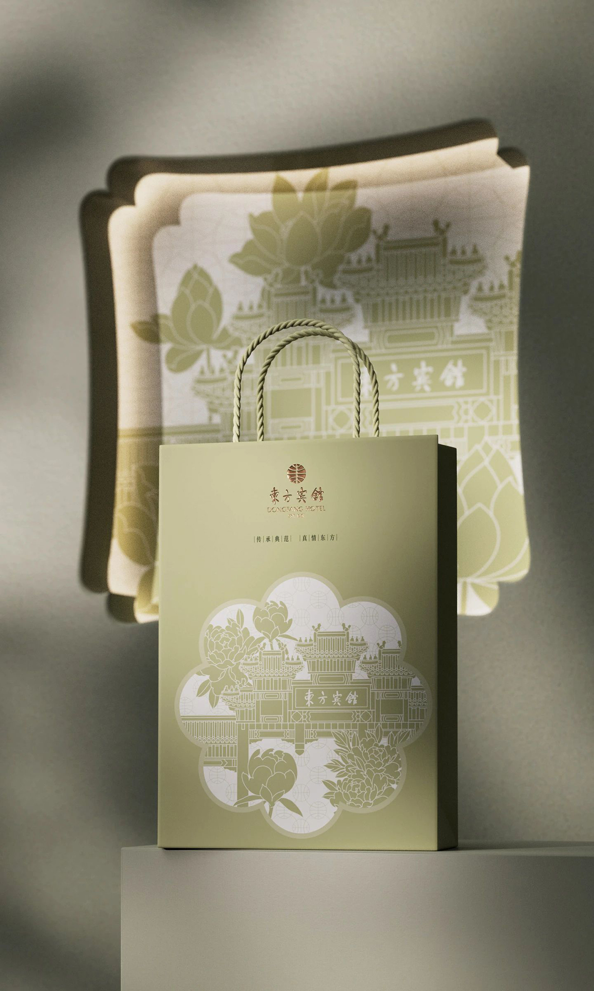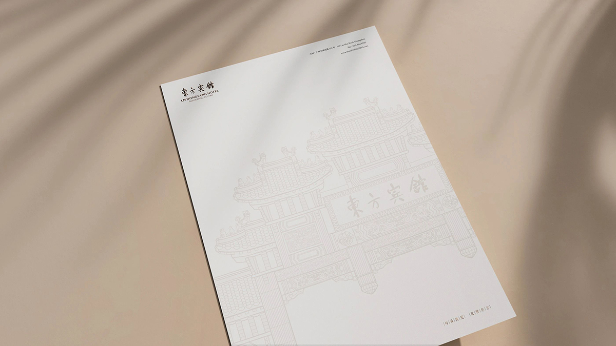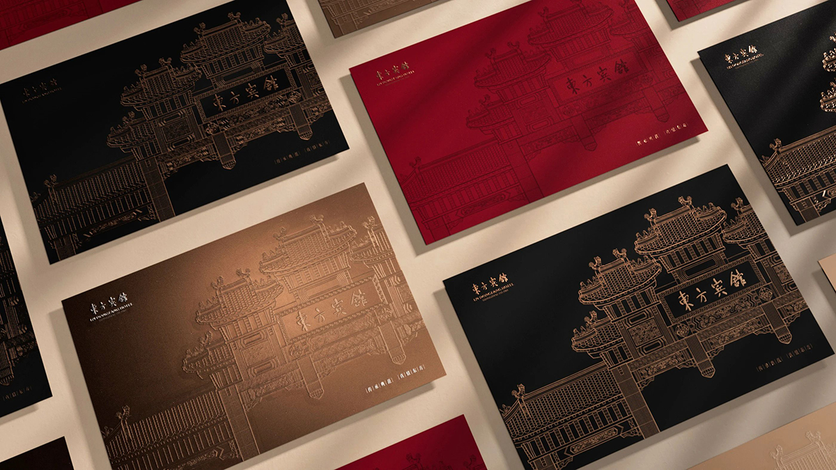 所以我们在东方宾馆的众多视觉资产中,选定东字标和牌坊作为品牌视觉“传家宝”,在“传家宝”的基础上重新构建品牌视觉资产。